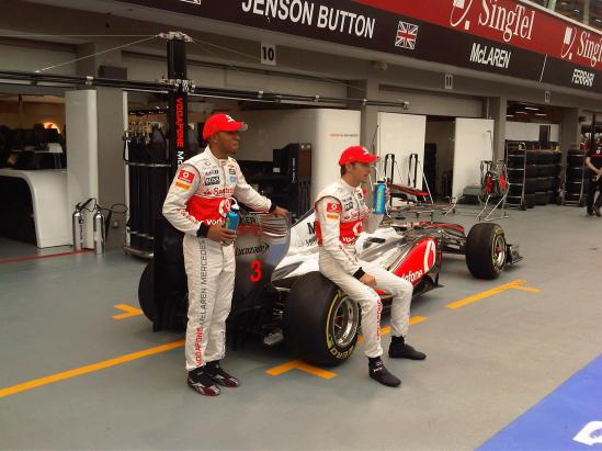 Thirsty lads? Lewis and Jenson take a quick pitstop in Singapore today. Thanks to our friends at http://www.facebook.com/lucozade.