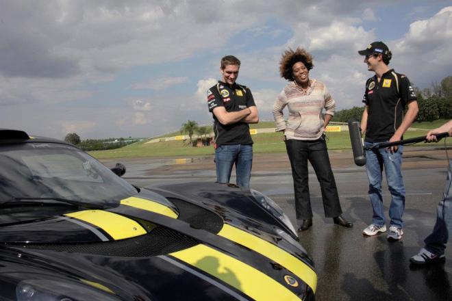 Macy Gray, Bruno Senna and Vitali Petrov at Pirelli Race Track in Paulinia, Brazil.