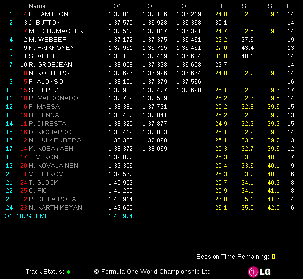 Lewis Hamilton took pole again in Malaysia. McLaren on 1-2 again. Michael Schumacher on P3!