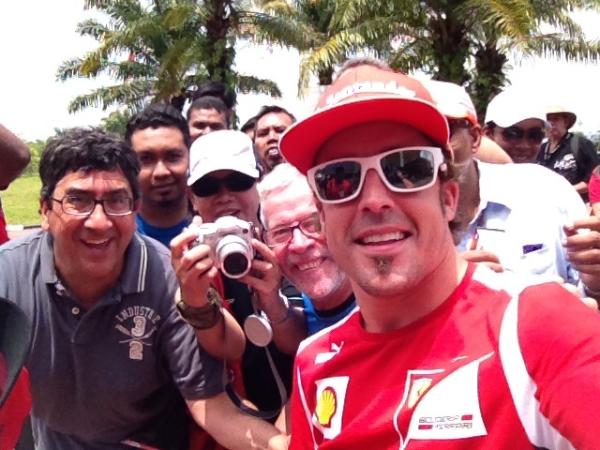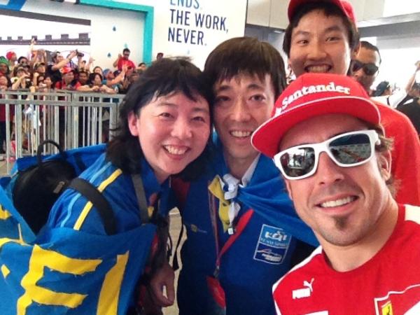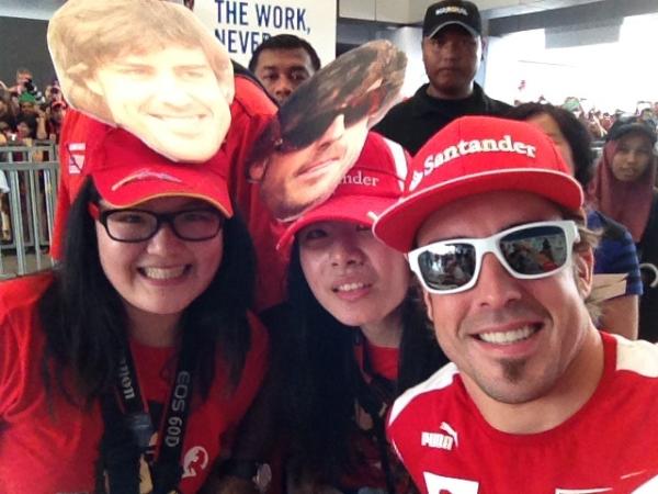 Fernando Alonso posing with fans in Malaysia