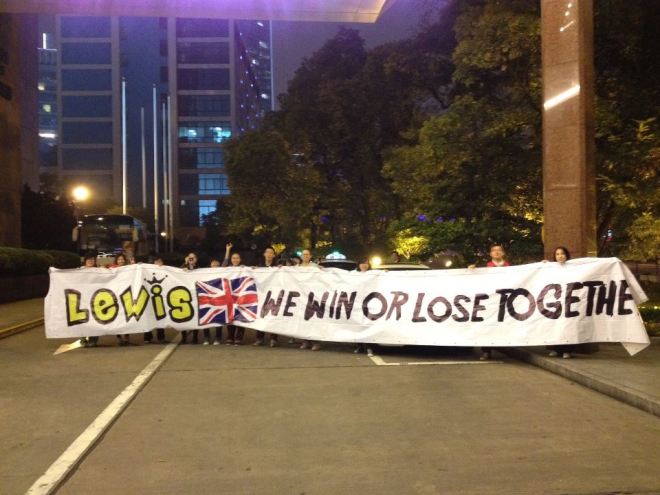 Chinese fans outside Lewis Hamilton’s hotel in Shanghai