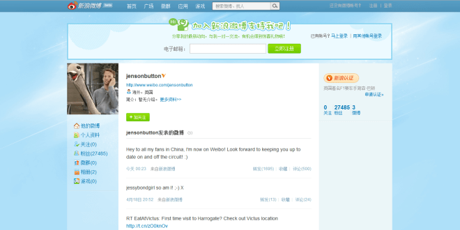 You can follow Jenson Button on Weibo here.