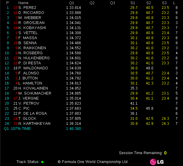Sergio Perez quickest in Q1 in Bahrain (Kovalainen beats Schumacher!)