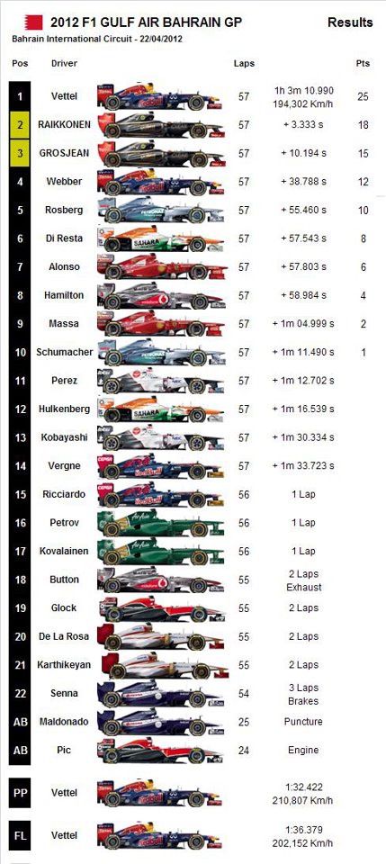 2012 Formula 1 Gulf Air Bahrain GP – Results
