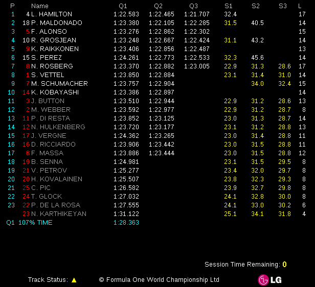 2012 F1 GP DE ESPAÑA SANTANDER – Starting Grid