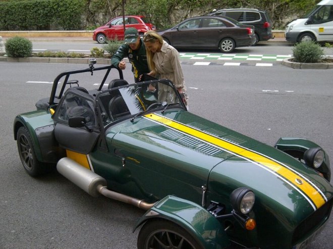 Heikki showing Georgie round the Caterham before taking her for a spin through Monaco circuit