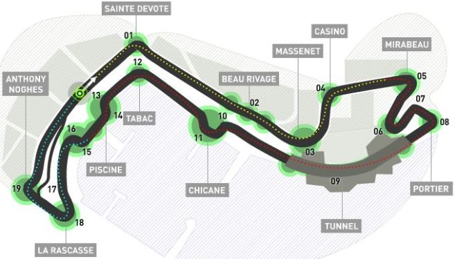 Similar to a typical street circuit, Circuit De Monaco is tight and twisty, besides being surrounded by many landmarks. Overtaking is also limited because of the narrow track. Race results tend to be decided by drivers’ skill, race strategy and grid positions rather than the performance of the F1 cars. Super-soft and soft tyres will be used in this circuit this year. With the new 2012 Pirelli tyres with heavier degradation, race strategy will once again play a more important role in this circuit. One of the famous section of the circuit is the Fairmont Hairpin which is the slowest, tightest corner in the season, taken at about 46 km/h. The steering systems and suspensions of the cars have to be redesigned to cope with the hairpin. Another popular section is the tunnel below the Fairmont Hotel. DRS is banned in this tunnel because the cars can lose 20–30% of downforce due to the aerodynamic properties of the tunnel. The tunnel is also difficult to cope with because the eyes cannot switch from light to dark and then to light quickly. Just after the tunnel is a tight left-right chicane, the only place where overtaking can be done. Sergio Pérez had involved in an accident here in 2011 which caused him to miss Monaco and Montreal Grand Prix. The third last corner (La Rascasse) is a tight 180 degree right hander which again requires full steering lock.