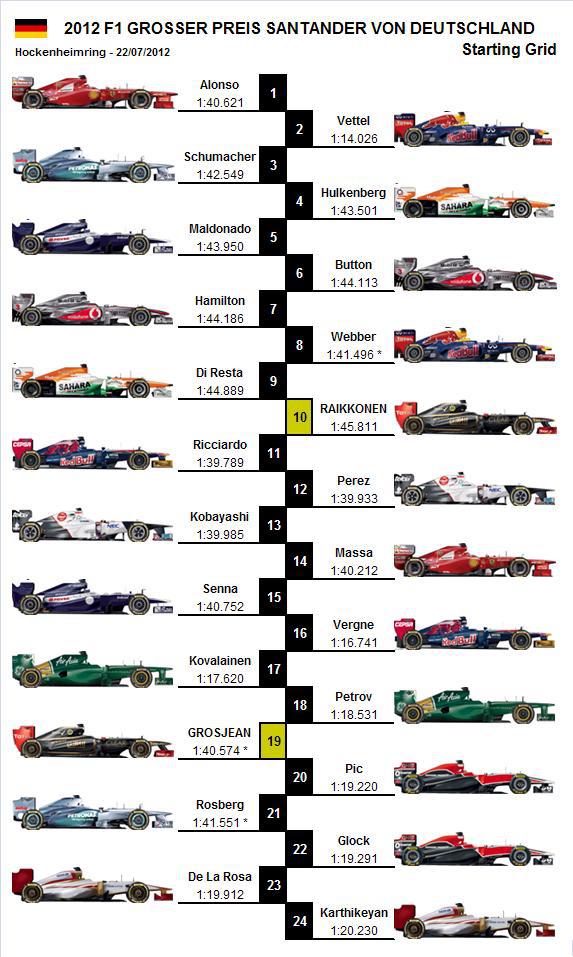 2012 F1 Grosser Preiss Santander von Deutschland – Starting Grid