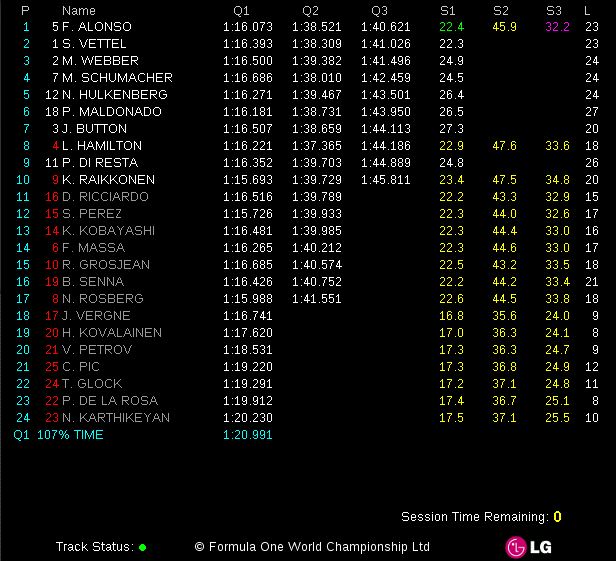2012 F1 Grosser Preiss Santander von Deutschland – Starting Grid