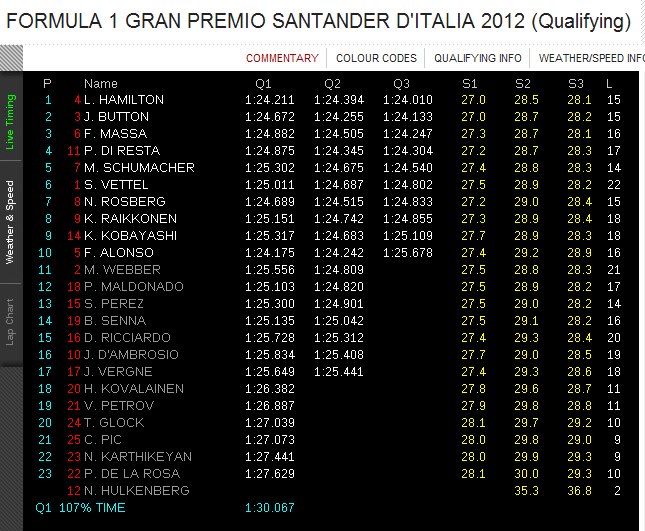 ‎2012 F1 Gran Premio Santander d’Italia – Starting Grid