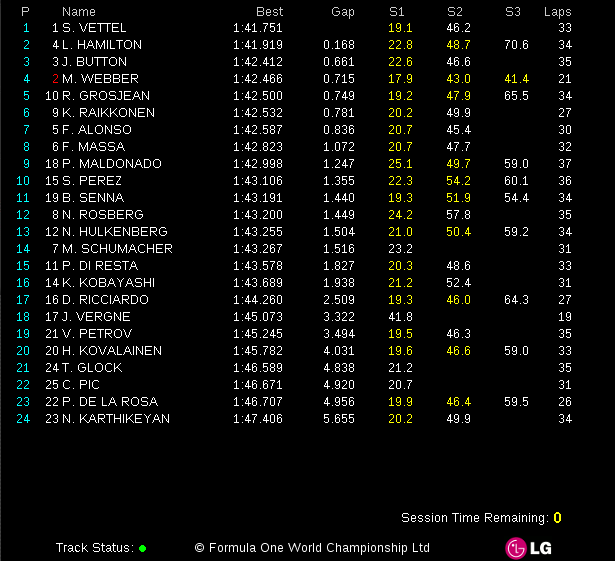 Official TimingsVettel quickest in FP2 in Abu Dhabi; Lotus Renault breaks into top six The Renault’s ahead of the Ferrari’s would be a nightmare for Alonso. As if chasing the Red Bull’s weren’t enough! Please be social: Click to share on Flattr (Opens in new window) Flattr Click to share on Facebook (Opens in new window) Facebook Click to share on X (Opens in new window) X Click to share on Pinterest (Opens in new window) Pinterest Click to share on Tumblr (Opens in new window) Tumblr Click to share on LinkedIn (Opens in new window) LinkedIn Click to share on Reddit (Opens in new window) Reddit Like Loading... Published by Admin View all posts by Admin