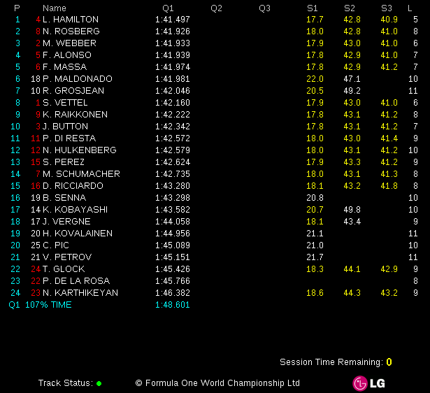 Hamilton quickest in Q1 in Abu Dhabi; Alonso P4; Vettel P8