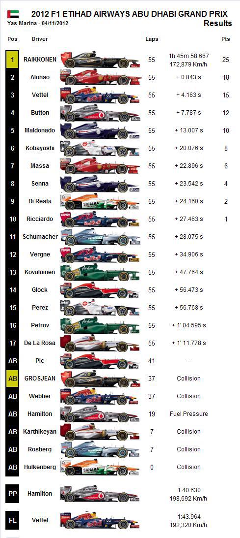 ‎2012 F1 Etihad Airways Abu Dhabi Grand Prix – Official Race Results