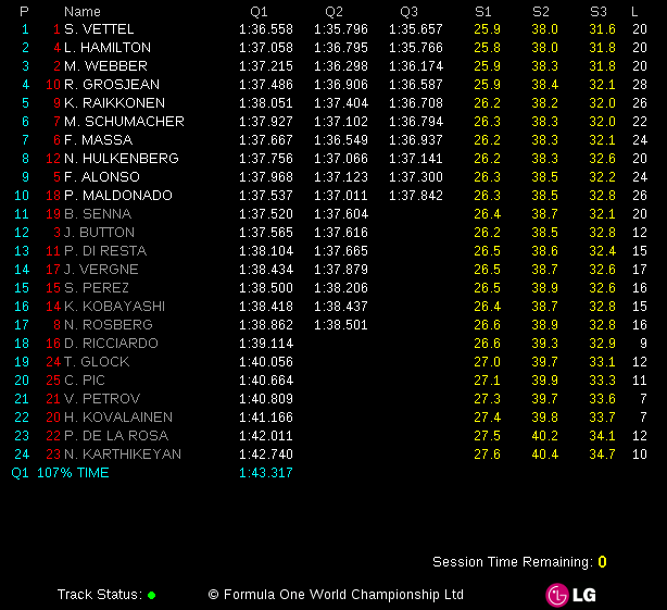 ‎2012 F1 United States Grand Prix – Starting Grid