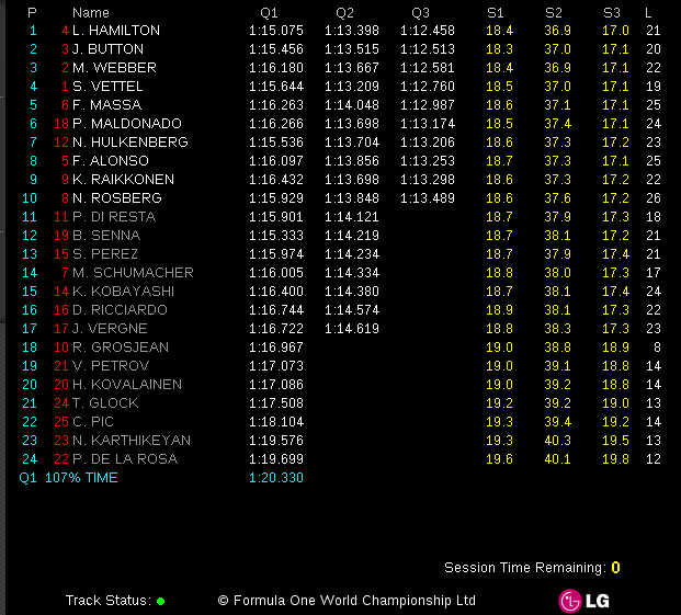2012 F1 Grande Premio Petrobras do Brasil – Starting Grid