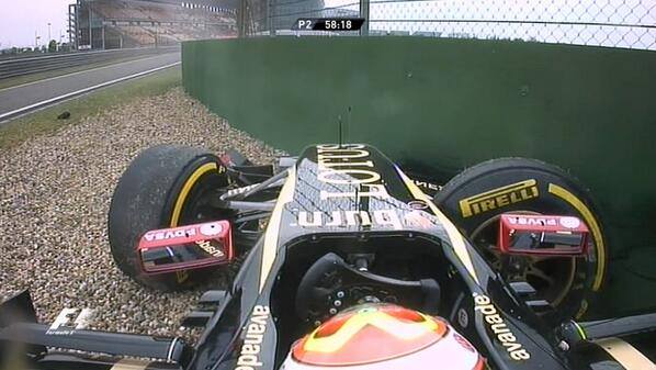 The Lotus driver drove into the wall on Friday. Team radio: “I crashed”.