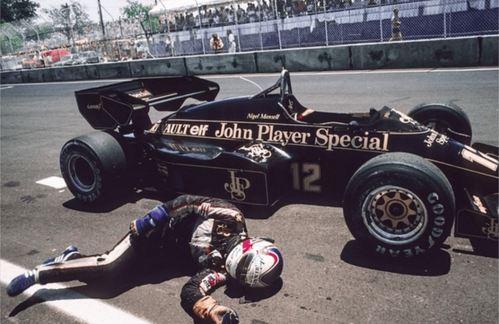 During the final lap of the 1984 Dallas Grand Prix, held in extreme weather conditions, Nigel Mansell touched the wall, damaging the gearbox of his Lotus. His car came to a stop just a few meters from the finish line. Exhausted, Mansell tried to push the car across but collapsed on the asphalt, overcome by the physical effort and the oppressive heat. The image of Mansell lying unconscious became one of the defining symbols of the extreme physical demands faced by Formula 1 drivers in that era.