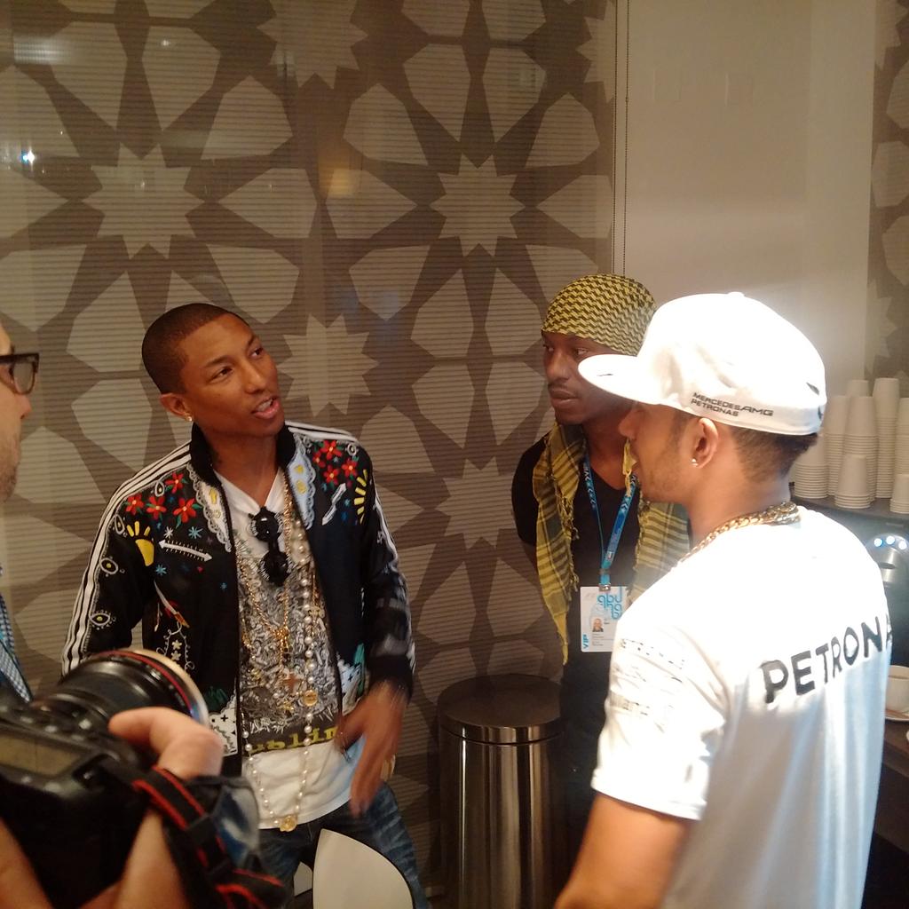 PhotosPharrell Williams and Lewis Hamilton discuss the final race of the season Two superstars in Abu Dhabi.