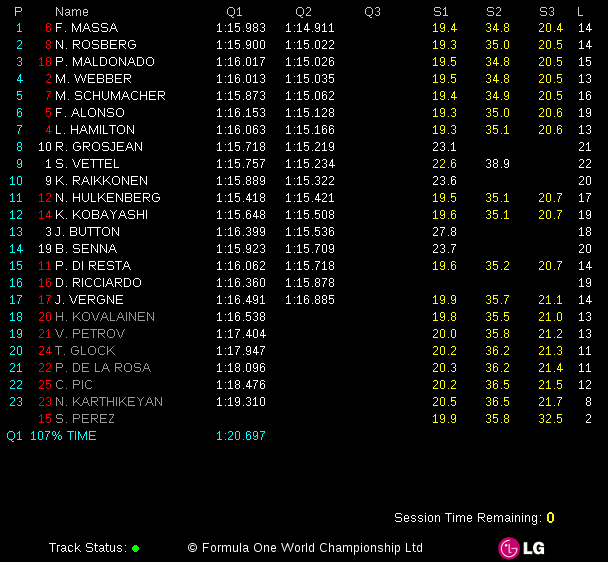 Official TimingsMark Webber on pole position in Monaco Michael Schumacher was quickest but has a 5 position penalty from Barcelona.