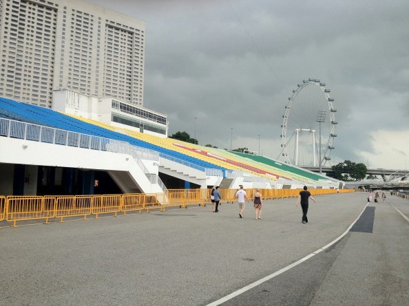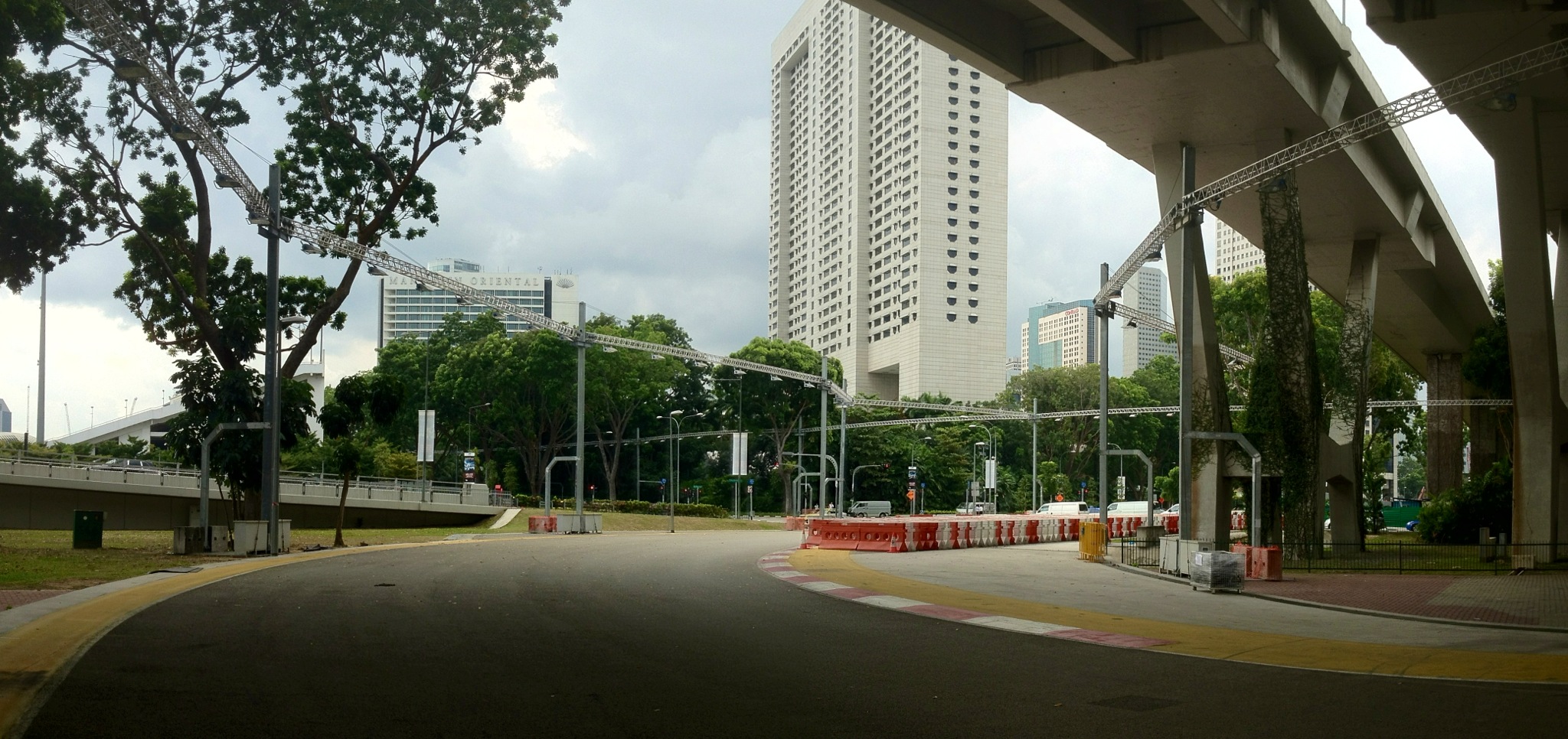 The track passes under ECP (East Coast Parkway) on the pit straight before Sheares (Turn 1).Skid marks on Sheares (Turn 1). This corner was named after Benjamin Henry Sheares, the 2nd President of Singapore.The Green Room is being constructed near Turn 2. In 2009, Mark Webber’s car hit the barriers at Turn 2 which ended his race prematurely.Cars need to brake to about 90 km/h to tackle Turn 3. DRS detection zone is between Turn 3 & Turn 4.The temporary marking on the public road after Turn 3 during Singapore Grand Prix.The look of the pit building from behind at Turn 4.Turn 5 is behind the Singapore Flyer. This is the start of the DRS activation zone.Movable kerbs are used along the track for easy removal during Singapore Grand Prix.The long straight after Turn 5 provides overtaking opportunities with DRS activated.Shopping centres & MRT stations are in proximity throughout the whole circuit. Millenia Walk on the left and Promenade Circle Line MRT station on the right.Turn 6 sandwiched by the two permanent overpasses on the long straight.Directly at Turn 6 is the Pan Pacific Hotel.The section of long straight close to Turn 7.Memorial (Turn 7) with South Beach, a planned commercial and residential complex with green technology on the right.Civilian War Memorial, also known as “The Chopsticks” at Memorial (Turn 7). In 2011, Hamilton was given a drive-through penalty for puncturing Massa’s tyre.The corner in front (Turn 8) is very unique as the cars will come round again for Turn 14. In 2011, Schumacher has crashed into retirement at Turn 8.Four such underpasses are located at the four corners of Turn 8 or Turn 14 to allow spectators to move around the circuit easily.Singapore Recreation Club on the left side of the track just after Turn 8.Swissôtel The Stamford, one of the tallest hotels in Southeast Asia, is right next to the track at Turn 9.The long straight after Turn 9 beside The Padang (“Field” in Malay language) set against the Singapore skyline.The Padang mainstage will be located here where Maroon 5, Katy Perry and Jay Chou will be performing during the race weekend in 2012.The original look of the famous “Singapore Sling” (Turn 10). This corner is named after a world renowned cocktail originated from Singapore.The Asian Civilization Museum near Turn 12.The section of the track on Anderson Bridge, named after Governor of the Straits Settlements and High Commissioner for the Federated Malay States (1904–1911), Sir John Anderson.Close proximity with the track on the sideways of Anderson Bridge.The Fullerton Waterboat House at Turn 13. It was built in 1919 and was designed by the renowned architectural firm, Swan & Maclaren and the building resembles the circular stern of a ship.The Fullerton Hotel, which is also the former General Post Office Building is right next to Turn 13.One Fullerton is also located at Turn 13.Turn 13 consists of the right lane of the blue bus in the picture to the left lane of Esplanade Drive in the background.After Turn 13 is a long straight about 500 metres before meeting up with Turn 14 or Turn 8 beside the Esplanade.Underpass beside the Esplanade Bridge where the sound is amplified several times with fantastic reverberation.The view of Esplanade Bridge and Esplanade on the far side under the bridge.Merlion Park at Turn 13 with the famous Singapore skyline backdrop.The long straight of Esplanade Bridge in reverse direction.The view of Esplanade from the location of Connaught Grandstand.Marina Square shopping centre on the left of the track at Turn 15.The rear view of Bay Grandstand from Turn 16.The front view of Bay Grandstand from Turn 17.The view from Turn 18 in reverse direction. Cars going under the grandstand after this.The section of the track that goes under the grandstand.Turn 19, the exit from the Bay Grandstand.Ritz Carlton at Turn 19.The junction just before Turn 20 which leads into the temporary track sections.Turn 21 which goes under ECP with Gardens By The Bay on the left side & Marina Bay Sands on the right side in the background.The view of the last straight before the last two turns.The Urban Beach Bar at Singapore Flyer is less than 4 metres to the pit lane.The last turn of the Marina Bay Street Circuit.The view of the pit lane.The view of the podium.The skid marks of the tyres.The Float @ Marina Bay, the world’s largest floating stage is directly in front of Bay Grandstand, between Turn 17 & Turn 18.Marina Bay Street Circuit Diagram.