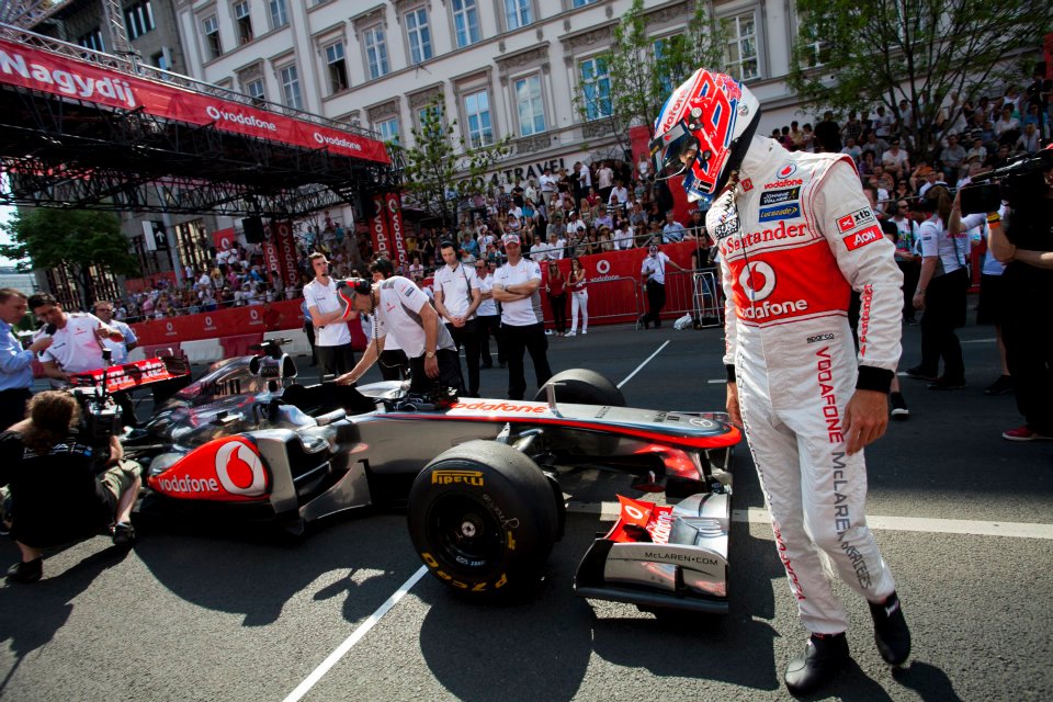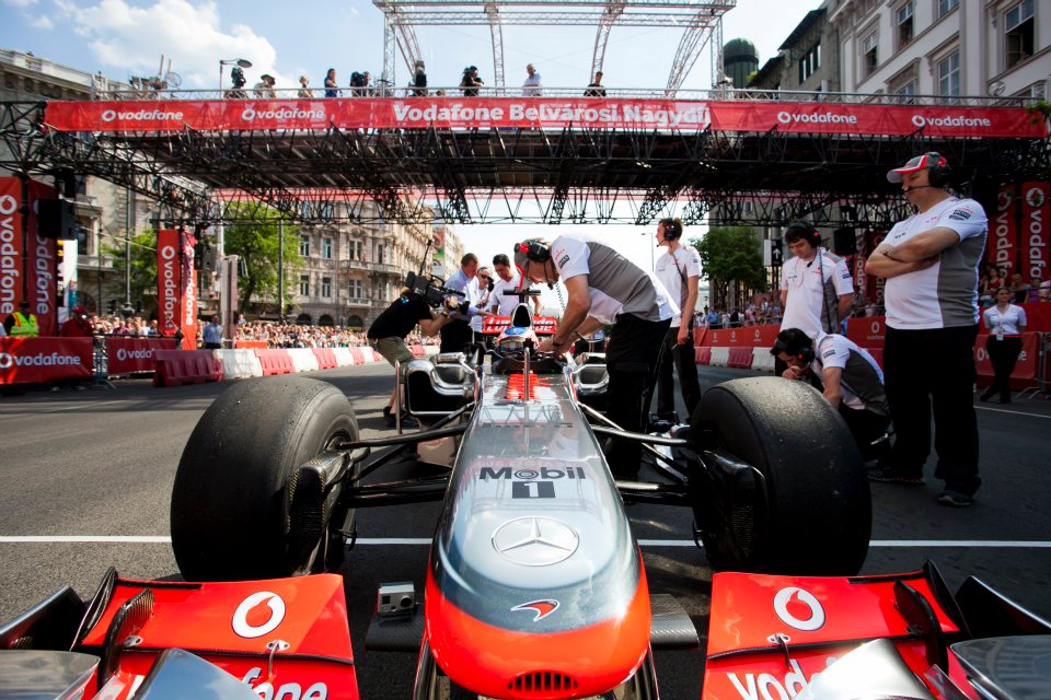 Vodafone McLaren Mercedes driver Jenson Button drove a Formula 1 car through the heart of Budapest on Tuesday May 1. Improvement – the desire to do better – is the common theme of the Raise Your Game weekend, with a wide choices of competitions in which the winners will get to meet Jenson in person. This had provided a perfect conclusion to the full entertainment weekend by Vodafone Hungary to celebrate the modernisation of its network.